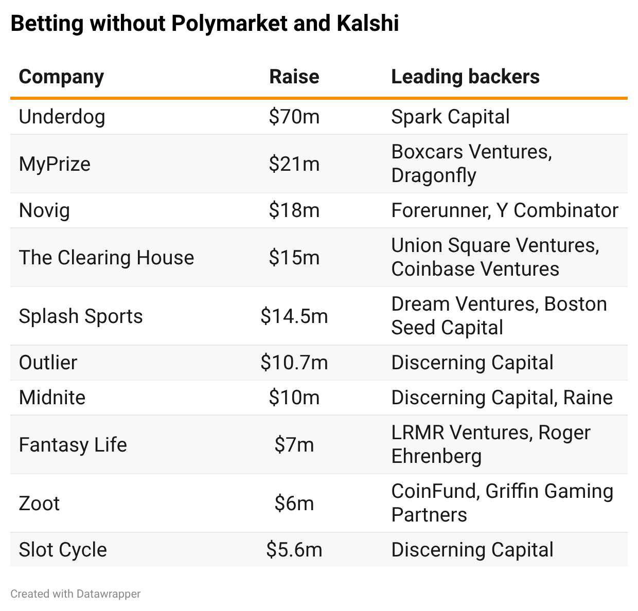 In total, ex-the two prediction giants but including ancillary areas such as gaming payments, regtech and user acquisition funding, the sector gathered in at least $347m.