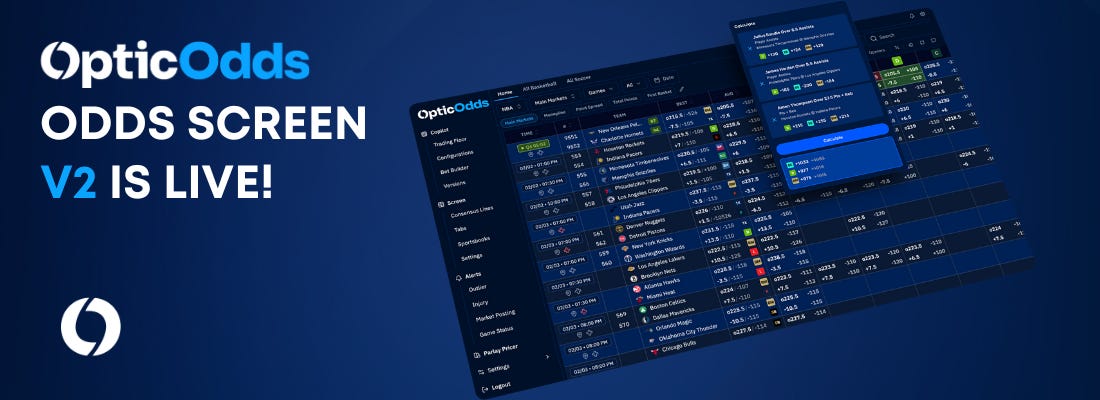 We asked traders what they actually needed. Then we built it. OpticOdds Screen V2 gives you customizable layouts with MyView, real-time and historical odds side by side, and smart alerts that cut through the noise so you can act faster.